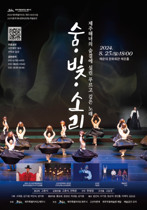 [뉴스서울] 제주시 고산어촌계 해녀문화공연단은 오는 8월 25일 오후 6시에 부산 해운대문화회관 해운홀에서 ‘숨·빛·소리’를 테마로 특별공연을 개최한다.