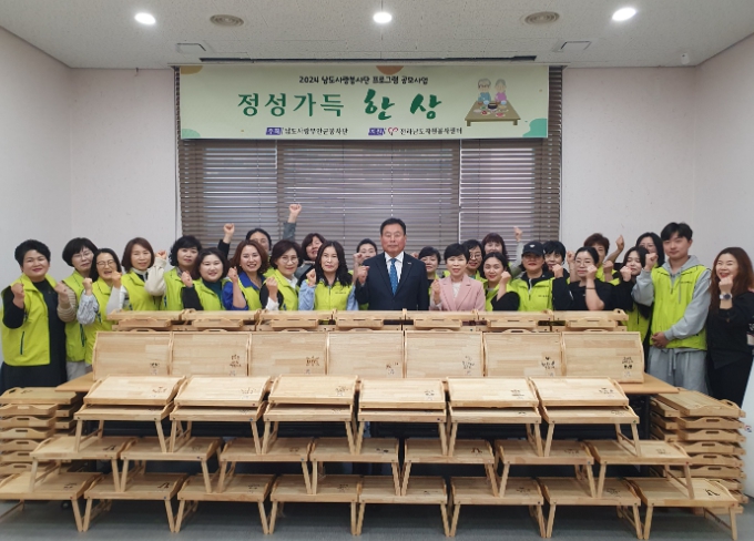 남도사랑 무안군 봉사단에서 제작한 원목 밥상은 무안군 사회복지협의회 생활지원사를 통해 주거환경이 열악한 독거노인에게 전달될 예정이다.