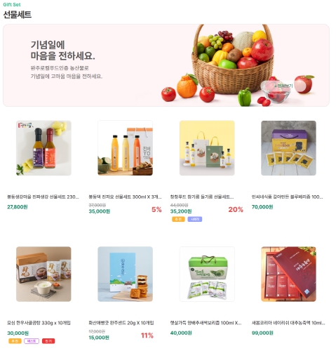 ▲ 추석선물은 로컬푸드 1번지 ‘완주몰’에서 완주산 농·축산물 및 가공상품 최대 30% 할인 판매 |