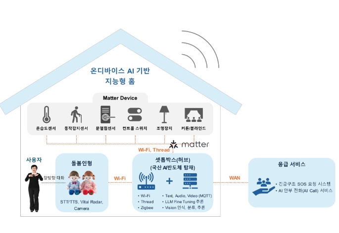 이러한 지능형 홈 서비스를 구현하기 위해 조도, 거주자의 얼굴 표정, 움직임 등 집 안 상황을 인식하는 AI 비전 모델과 지역 방언, 거주자별 발음 특성 등이 반영된 홈-sLM을 개발하고, 클라우드 활용 없이 집 안에서 AI가 구동될 수 있도록 국산 AI 반도체가 탑재된 지능형 홈 허브기기를 개발할 예정이다.