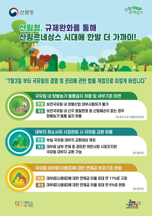 ▲ 국유림 경영관리 법률 개정사항(대부료 연체금 이자율 감면 등). |