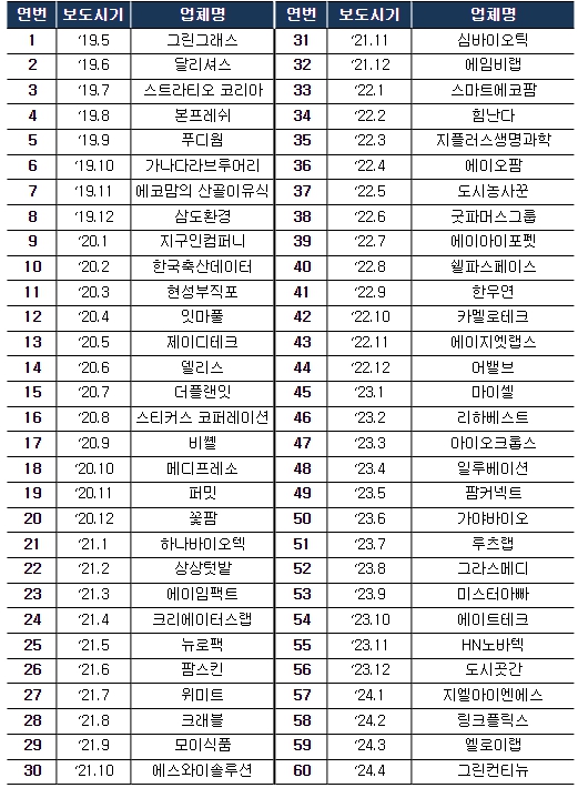 [뉴스서울] 농림축산식품부는 ‘이달의 에이(A)-벤처스’에 선정된 역대 60개 기업의 정보가 담긴 소개서를 발간했다.