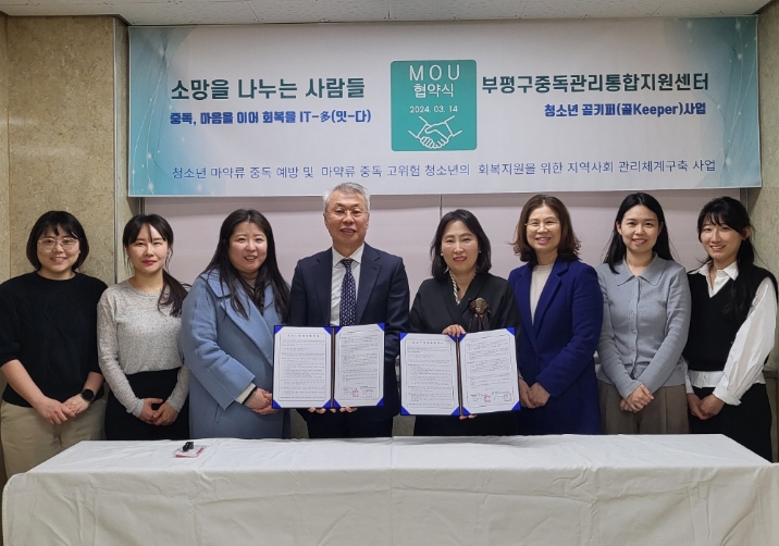 [뉴스서울] 인천시 부평구중독관리통합지원센터와 사단법인 소망을 나누는 사람들은 14일 청소년 마약류 중독 예방 등을 골자로 한 업무협약을 체결했다.