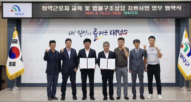 대덕구는 고용노동부 공모사업인 ‘2024년도 취약근로자 교육 및 법률구조상담 지원사업’에 선정됨에 따라, 사업의 원활한 수행을 위해 지난 14일 한국노총과 업무협약을 맺었다고 밝혔다.