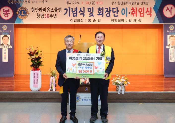 [뉴스서울] 함안라이온스클럽은 지난달 28일 함안문화예술회관 연회장에서 제56주년 창립기념 행사 및 회장 이·취임식을 가졌다.