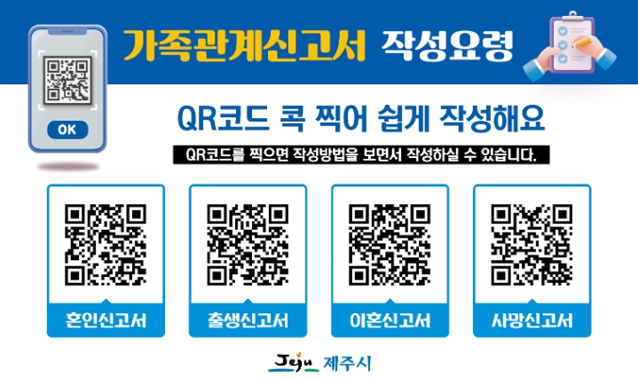 [뉴스서울] 제주시는 민원실을 방문하는 시민들이 쉽고 편리하게 가족관계등록신고서를 작성할 수 있도록 QR코드 안내 서비스를 제공한다.
