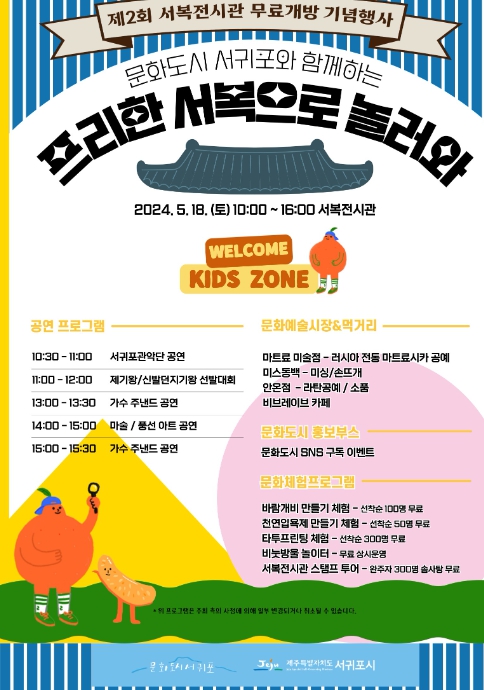 본 행사는 5월 가정의 달을 맞아 서복전시관 무료 개방 1주년과 3년 연속 최우수 문화도시 선정을 기념하여 서복공원의 자연경관을 활용, 시민, 관광객 및 지역 문화예술인이 함께 즐길 수 있는 문화 체험행사로 꾸며질 예정이다.