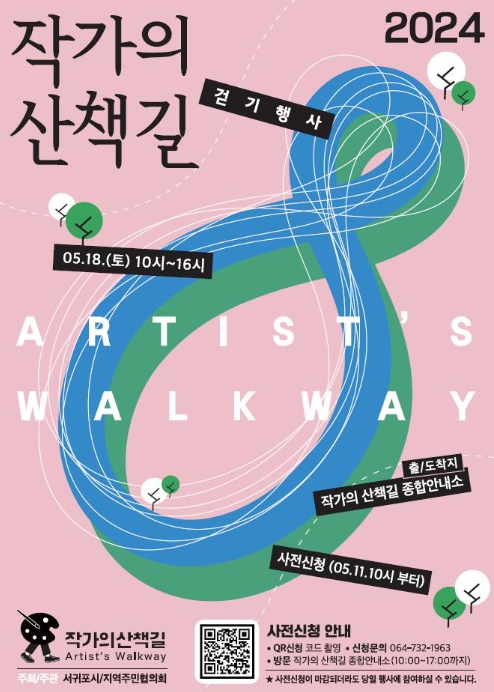 [뉴스서울] 서귀포시는 18일 10시부터 16시까지 작가의 산책길 종합안내소(이중섭거리 내)를 주행사장으로 하여 `2024 작가의 산책길 걷기행사'를 개최한다.