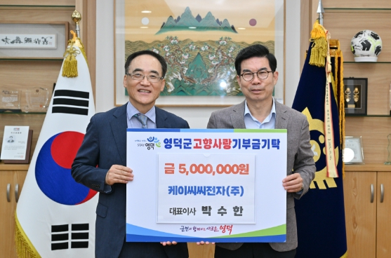 [뉴스서울] 부산 사상구에 있는 케이씨씨전자(주)의 박수한 대표가 지난 25일 김광열 영덕군수를 만나 고향사랑기부금 500만 원을 전달했다.