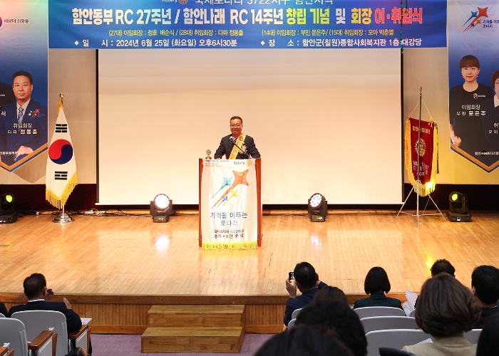 [뉴스서울] 함안 동부·나래로타리클럽은 지난 25일 오후 6시 30분, 함안종합사회복지관 1층 대강당에서 함안동부로타리클럽 창립 제27주년, 함안나래로타리클럽 창립 제14주년 기념식 및 회장 이·취임식을 개최했다.