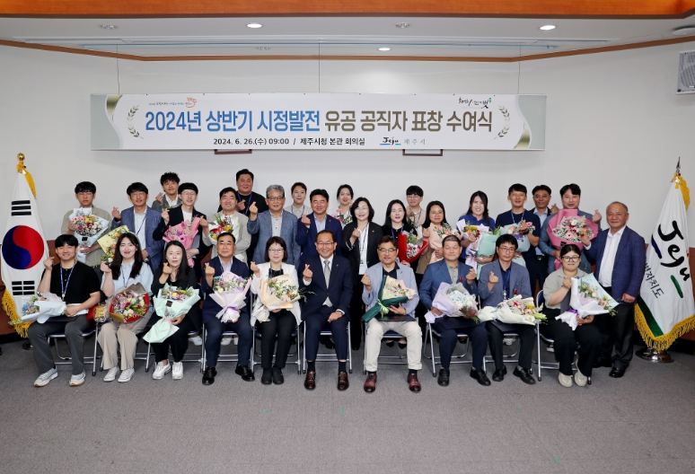 [뉴스서울] 제주시는 6월 26일 시청 회의실에서 2024년 상반기 유공자 표창 수여식을 열고, 제주시정 발전에 헌신한 유공 시민과 공직자 총 164명에게 시상했다.