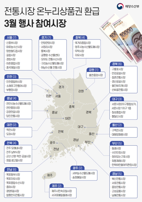 ▲ 3월 온누리상품권 환급행사 참여 시장 |
