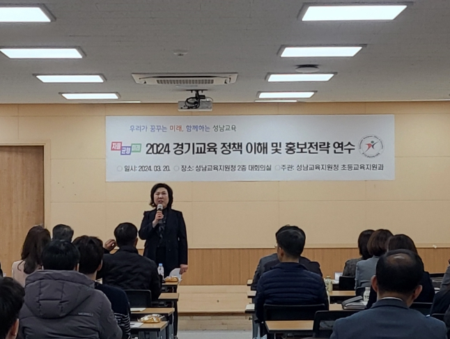 [뉴스서울] 경기도성남교육지원청은 지난 20일 성남교육지원청 대회의실에서 전 직원을 대상으로 주요 교육정책이 현장에 명확하게 전달할 수 있는 홍보 역량 강화를 위해 ‘경기교육 정책 이해 및 홍보 강화 연수’를 운영했다.
