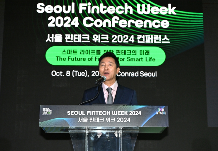 ▲ 오세훈 서울시장이 8일 오전 여의도 콘래드호텔에서 열린 ‘서울 핀테크 위크 2024’에 참석해 개회사를 하고 있다. |