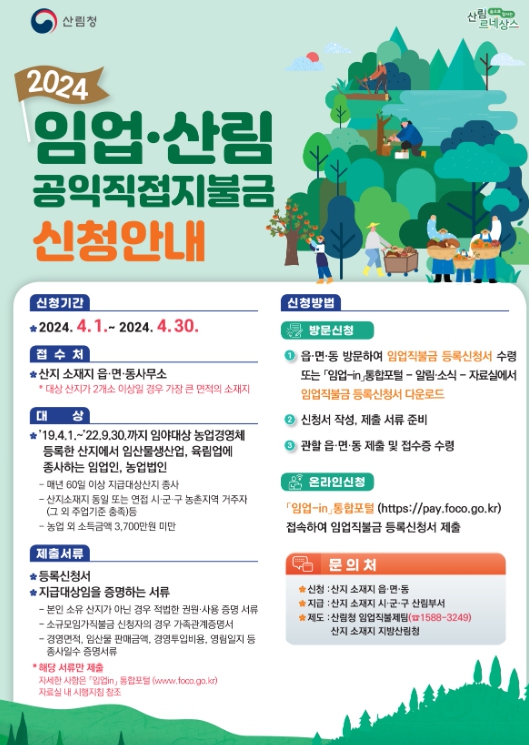 ▲ 임업직불금 4월 1일부터 방문·온라인 접수 |