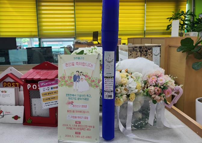 ▲ 미추홀구, 혼인신고 부부에 태극기 증정해 |