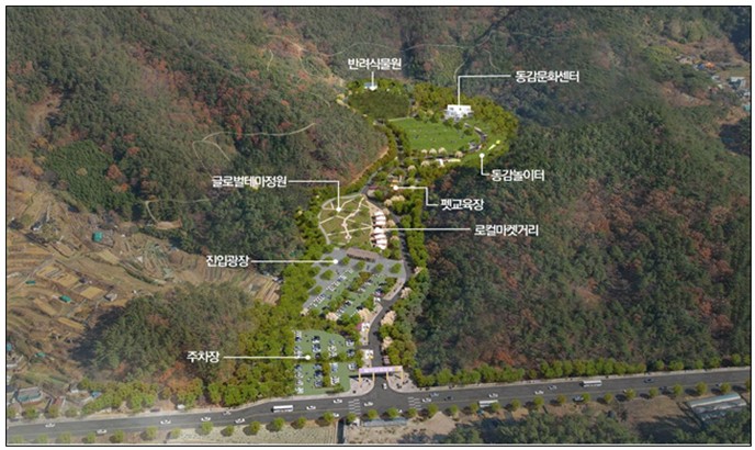 기장군 철마면 구칠리 내 24만 1천 제곱미터(㎡)에 시비 433억 원을 투입해 국내 최대 규모로 조성되며, ▲동감문화센터 ▲동감둘레길 ▲글로벌테마정원 ▲동감놀이터 ▲펫교육장 ▲반려식물원 ▲로컬마켓거리 등 반려문화 관련 다양한 시설 들어설 예정이다.