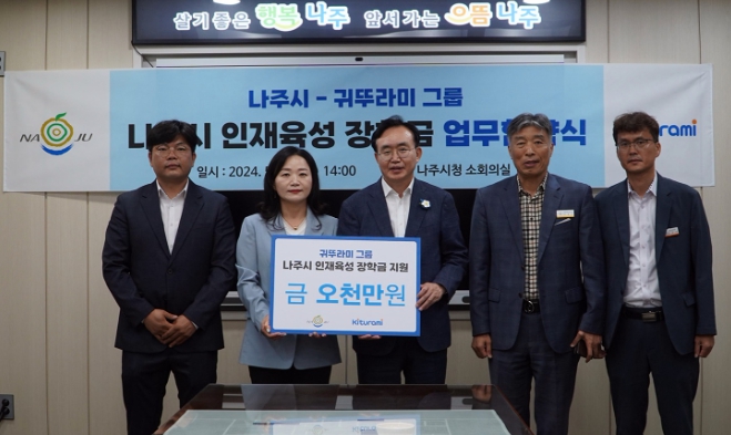 전라남도 나주시는 지난달 31일 시청사 소회의실에서 귀뚜라미 그룹과 저소득가정 장학금 지원을 위한 협약을 체결했다고 3일 밝혔다.