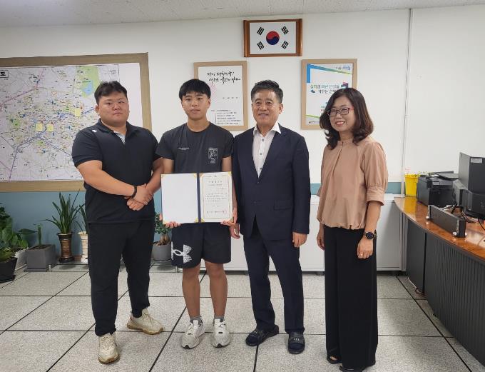 이유찬 학생은 최근 열린 제53회 전국소년체육대회 씨름 개인전에서 3위를 차지한 바 있으며, 지난 6월 30일 장학생선발심의회 심의를 거쳐 50만 원의 격려금을 받게 됐다.