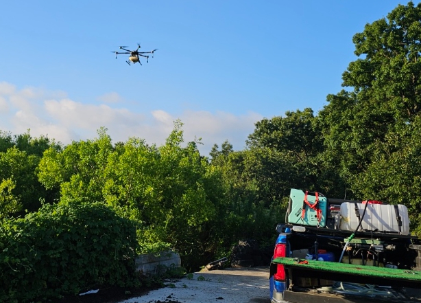 이번 방제는 총 30ha 규모로, 드론을 이용한 항공방제를 통해 농경지와 인접한 산림 내 서식하는 돌발해충을 농경지와 동시에 방제하여 효과를 극대화할 계획이다.