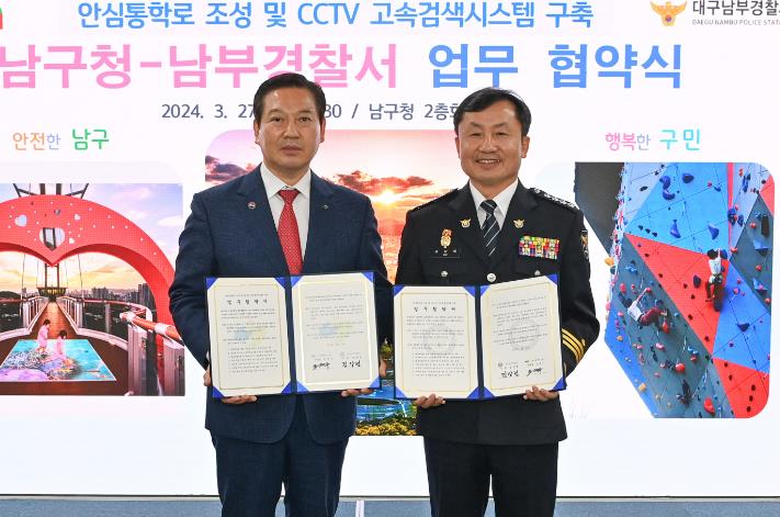 [뉴스서울] 대구 남구청은 지난 27일 남구청 회의실에서 남부경찰서와 안심통학로 조성 및 CCTV 고속검색시스템 구축을 위한 업무협약을 체결했다고 밝혔다.