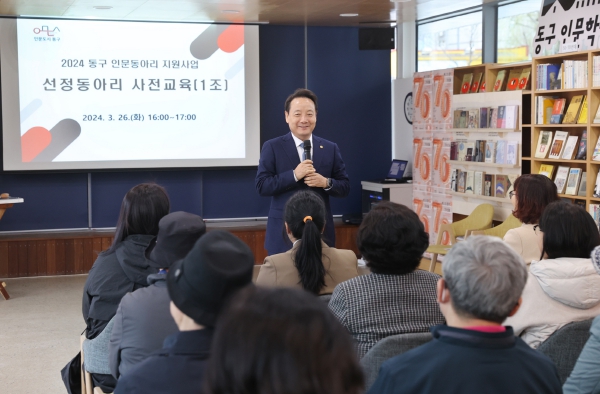 임택 동구청장은 “인문 동아리는 주민들의 자발적인 학습을 통해 인문 역량을 키우고 배움의 결과를 지역과 나누며 함께 성장하는 데 목표가 있다”면서 “앞으로도 다양한 자생적 인문 공동체들이 인문도시 동구의 주체로 나설 수 있도록 꾸준히 지원해 나가겠다”고 말했다.