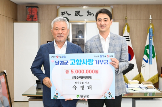 [뉴스서울] 달성군은 화진산업 유경태 대표가 24일 군청을 방문해 고향사랑기부제 연간 최고금액인 500만 원을 기탁했다고 밝혔다.