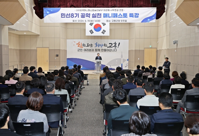 [뉴스서울] 고흥군은 지난 19일 군청 우주홀에서 (사)한국매니페스토 실천 본부 이광재 사무총장을 초청해 ‘민선 8기 공약 실천 매니페스토 특강’을 개최했다.