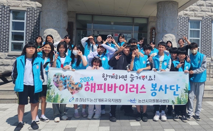 해피바이러스봉사단은 총 120여 명의 회원으로 구성된 논산지역 중고등학생들의 자발적인 봉사동아리이며 6개 거점(논산, 노성, 연무, 양촌, 광석, 연산)을 두고 거점 활동가와 월 1회 정기적으로 환경캠페인, 환경정화 활동 등 다양한 활동을 전개하고 있다.