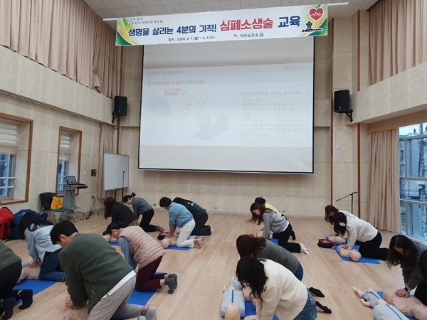 심폐소생술 교육은 △심폐소생술 이론 △마네킹을 이용한 심폐소생술 실습 △자동제세동기 사용법 △화상 처치, 하임리히법 등 기타 응급처치 △심뇌혈관질환 9대 수칙 안내 등의 내용으로 진행된다.
