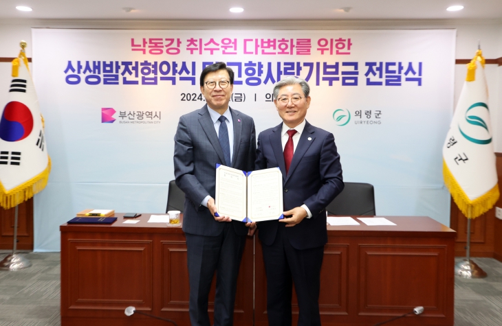 한편 의령군은 이번 협약을 통해 부산시로부터 재정적 지원을 끌어내는 성과를 냈다. 부산시는 연간 200억 원 규모로 취수지역 농산물 구매를 시행할 예정이며 취수지역 농민이 안정적인 판로를 구축하기 위한 추가적인 지원방안도 곧 내놓을 전망이다.