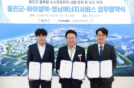[뉴스서울] 울진군은 지난 22일 울진군청에서 ㈜하이셀텍, 영남에너지서비스(주)와‘울진군 융복합 수소연료전지 사업 유치 및 보급 확대를 위한 업무협약’을 체결했다.