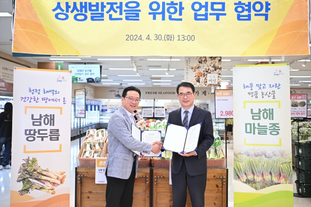 [뉴스서울] 남해군과 이마트는 4월 30일 대구 이마트 월배점에서 농산물 판매 및 홍보를 위한 업무협약(MOU)을 체결했다. 이는 지난해 4월 체결한 첫 업무협약에 이은 두 번째 상생 다짐의 장으로, 보물초와 마늘종 등 품질 좋은 남해군 농산물의 판로 확대에 크게 기여할 것으로 기대된다.