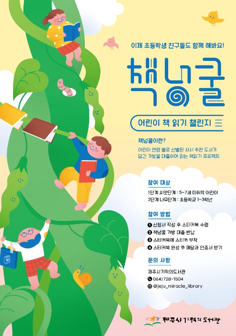 [뉴스서울] 제주시 기적의도서관은 지난해 5월부터 5~7세 미취학어린이를 대상으로 운영하고 있는 책넝쿨 도서대출서비스를 오는 5월 5일부터 초등학교 1~3학년 학생까지 확대해 운영한다.