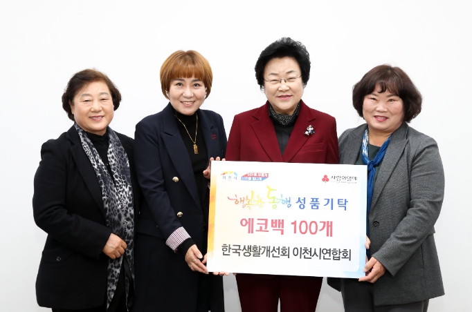 이날 기탁식에 기부한 물품은 직접 만든 에코백 100개로 이웃사랑을 실천하면서 생활 속 탄소중립 실천을 바라는 의미에서‘행복한 동행 나눔운동’캠페인에 동참해 따뜻한 온정을 베풀었다. 직접 만든 에코백 100개는 이천시 내 노인시설, 장애인시설, 아동시설 등 사회복지시설에 전달되어 시설수급자와 이용자를 위해 사용될 예정이다.