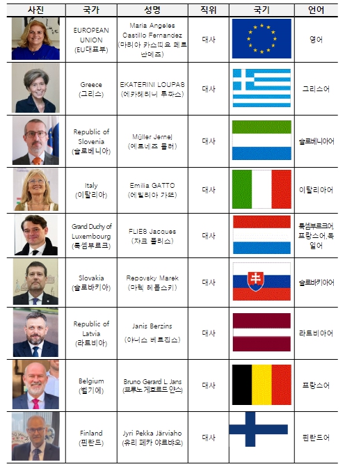▲ 주한 유럽연합 공관 대사 명단(9명) |