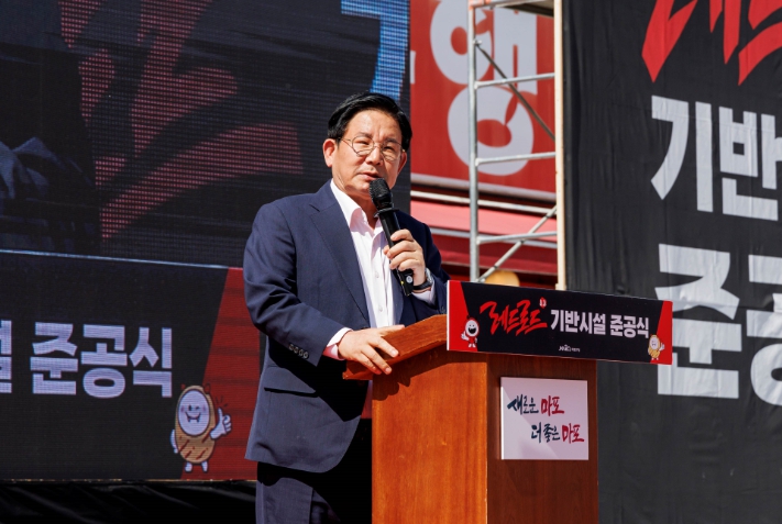 ▲ 4월 27일 홍대 레드로드 R1,R2 기반시설 준공식이 개최돼 박강수 구청장이 시민에게 감사의 인사를 하고 있다. |