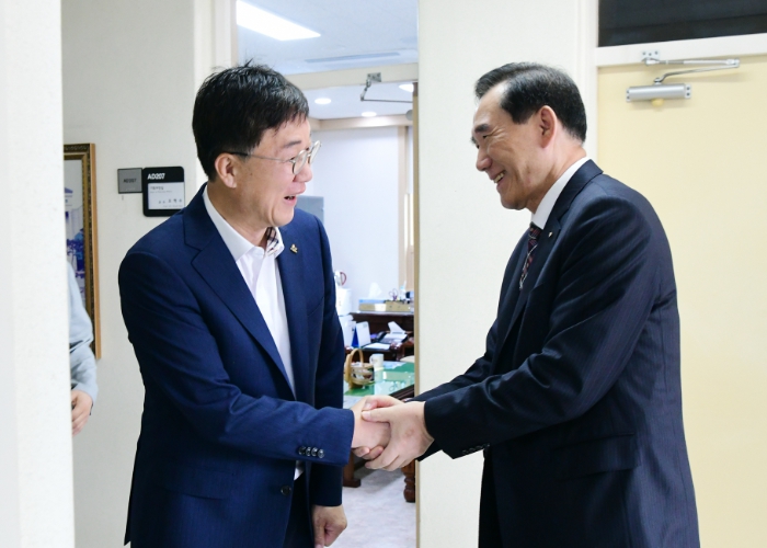 | ▲ 안산시, 지역-대학 상생 모델 이끈다… 동반성장 지원책 모색(지의상 신안산대 총장과 인사) |
