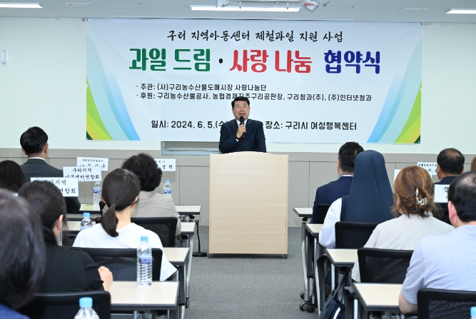 이번 협약은 구리농수산물도매시장 관계자들이 구리시의 따뜻한 동행 시책사업과 연계해 구리 지역아동센터 이용 아동들의 성장에 필요한 맞춤 영양소인 신선한 제철과일을 지속적으로 제공하고, 우리 농산물의 필요성과 우수성을 알리고자 마련됐다.