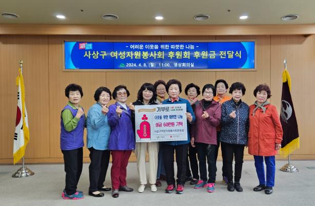 조병길 사상구청장은 “꾸준히 지역사회를 위해 봉사와 기부를 해주시는 사상구여성자원봉사회후원회에 다시 한 번 감사드린다”고 인사를 전했다.