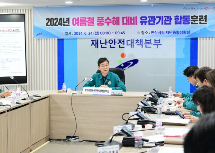 [뉴스서울] 안산시는 지난 24일 시청 재난종합상황실 및 관내 반지하 주택가에서 ‘2024년 여름철 풍수해 대비 합동훈련’을 실시했다고 25일 밝혔다.