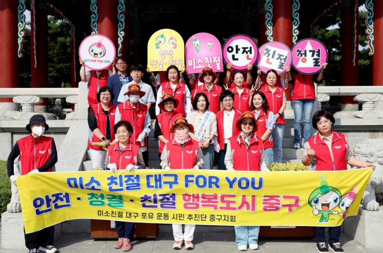 한편, 미소친절 대구포유운동시민추진단 중구지회는 매월 캠페인을 실시하고, 각종 행사와 자원봉사 등에 참여해 미소친절 문화확산을 위한 적극적인 활동을 전개할 예정이다.