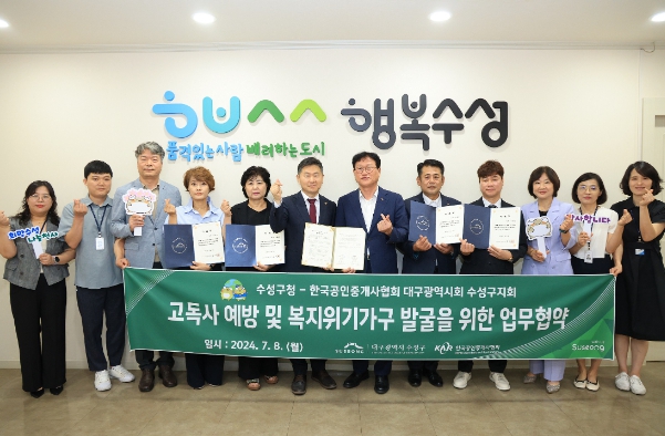 [뉴스서울] 대구 수성구는 지난 8일 한국공인중개사협회 대구지부 수성구지회와 ‘복지위기가구 발굴 및 고독사 예방’을 위한 업무협약을 체결했다.