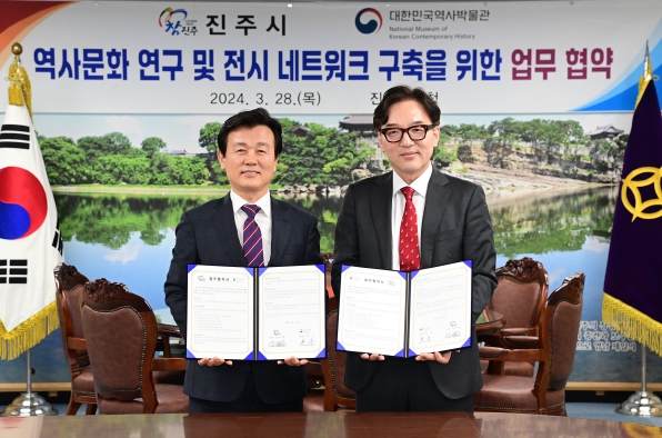 [뉴스서울] 진주시는 28일 시청 기업인의 방에서 대한민국역사박물관과 지역 역사문화 발굴 및 연구, 전시 네트워크 구축을 위한 업무협약을 체결했다.