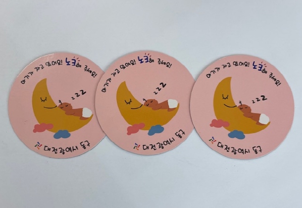 [뉴스서울] 대전 동구는 오는 26일부터 관내 출생신고를 하는 가정을 대상으로 ‘아기가 자고 있어요! 노크해 주세요!’ 초인종 자석 스티커를 제작해 무료로 배부한다.