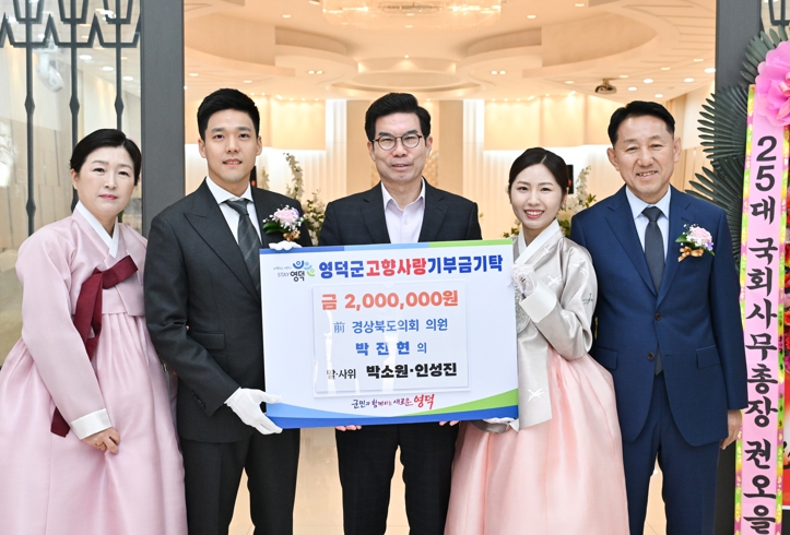영덕군(군수 김광열)에 따르면 전 경상북도의회 박진현 의원의 딸 박소원 양과 사위 인성진 군이 지난 6일 결혼식 전 피로연 자리에서 영덕군에 고향사랑기부금 200만원을 기탁했다.