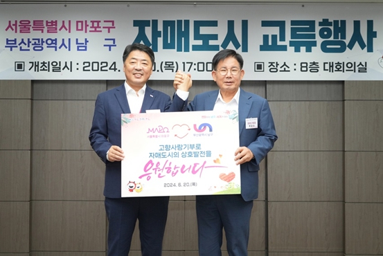오은택 부산 남구청장은 “지난해 가을, 자매도시 인연을 맺고 폭넓은 교류를 이어오던 마포구를 직접 방문하게 되어 반가운 마음이 크며, 앞으로도 양 도시가 서울과 부산에서, ‘구민이 가장 행복한 도시, 가장 살고 싶은 도시’가 될 수 있도록 서로 응원하며, 열정을 다해 함께 달려가길 기대한다”고 밝혔다.