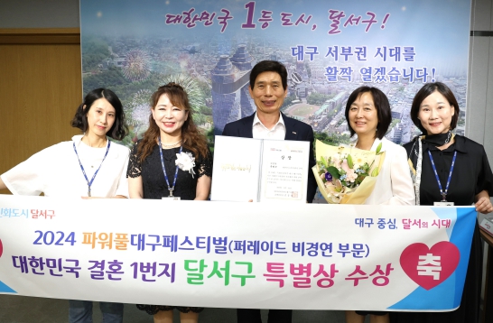 [뉴스서울] 대구 달서구가 지난달 대구 도심 국채보상로 일대에서 열린 2024 파워풀대구페스티벌 시민퍼레이드(비경연 부문)에 결혼을 주제로 참가해 6월 19일 특별상을 수상했다.
