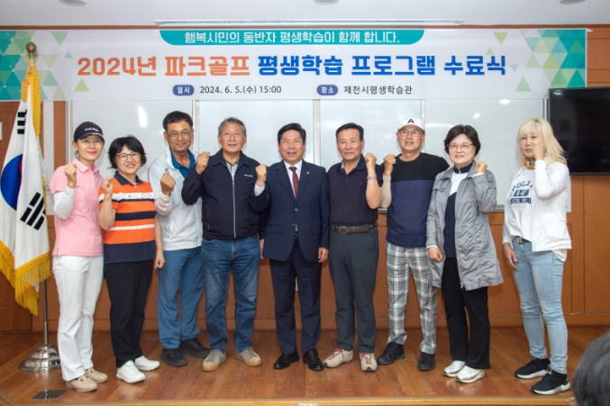 [뉴스서울] 제천시는 평생학습 프로그램으로 많은 관심과 인기를 얻고 있는 파크골프 입문자과정 1기와 2기 통합 수료식이 최근 평생학습관 강당에서 열렸다.