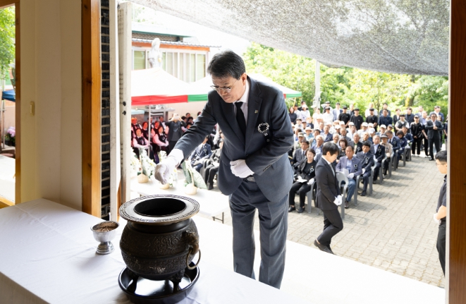 행사는 오전 10시에 사이렌 취명을 시작으로 ▲순국선열과 호국영령에 대한 추모 묵념 ▲조총 발사 ▲국민의례 ▲헌화․분향 ▲추념사 ▲추도사 ▲추모헌시 낭송 및 추모 노래 합창 ▲현충일 노래 제창 순으로 진행됐다.